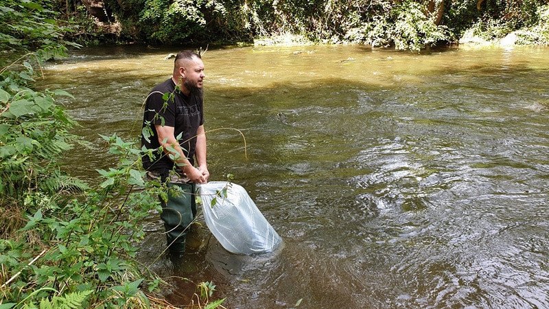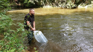 Wiosenne zarybianie rzeki Nysy Kłodzkiej pstrągiem potokowym