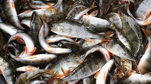 Asortyment amura podczas ważenia u hodowcy